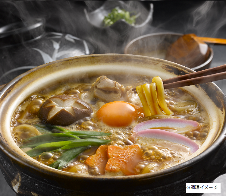 煮込み専用のうどんはお鍋一つで調理ができ、アツアツの味噌つゆとのバランスが絶妙です。