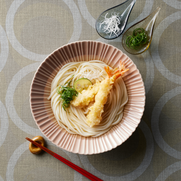 「きぬあかり」の特長を活かすよう麺線の太さを見直し、もっちりとしたうどん本来の旨さを味わっていただけるよう、あえてゆで時間をしっかりとらさせていただきました(釜揚16分、かけ18分、つけ20分)。たっぷりのお湯でじっくりゆでることで、もっちり食感とほんのり広がる甘みが際立ちます。「時間をかける」ひと手間が「きぬあかり」の旨さを引き出しました「きぬあかりうどん」です。